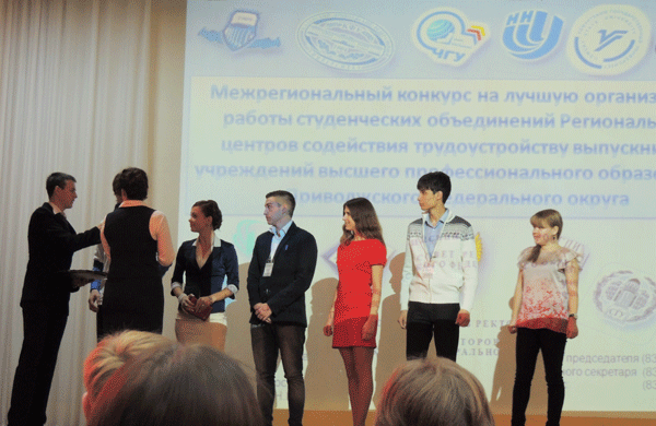 По итогам конкурса наши студенты стали победителями в одной из трех номинаций, привезя домой диплом победителя в номинации «Развитие многостороннего взаимодействия с работодателями», Почетную грамоту Председателя Совета ректоров ПФО Стронгина Р.Г. «За развитие студенческого самоуправления в сфере профессиональной ориентации студентов и трудоустройстве выпускников», а также ценные подарки.