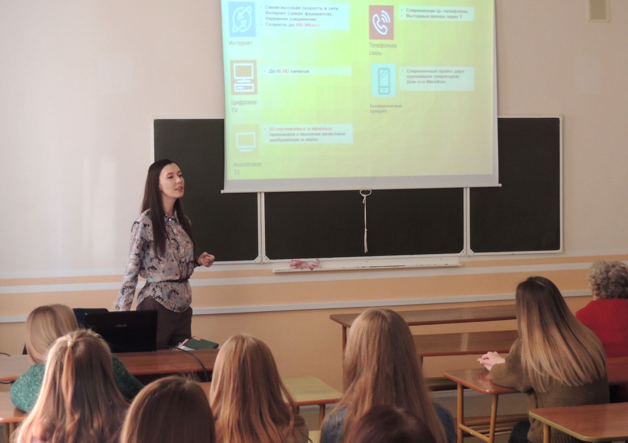 Менеджер по подбору персонала филиала АО «ЭР-Телеком Холдинг» в г. Йошкар-Оле Татьяна Пожидаева рассказала о компании, о вакансиях для студентов, а также подготовила презентацию на тему «Как правильно составить резюме». В интересной форме она объяснила студентам, что такое резюме и для чего оно нужно, выделила основные моменты правильного составления резюме, а также на конкретных примерах показала типичные ошибки при его составлении.