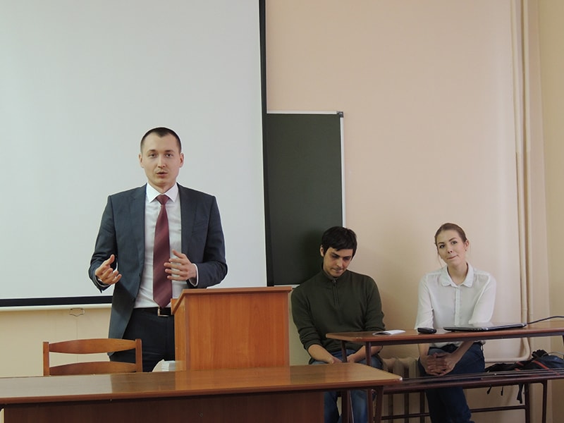 Руководитель компании – Руслан Ефимов, выпускник экономического факультета «политеха». Руслан вместе со своими коллегами Ольгой и Дмитрием рассказали студентам о компании, ее деятельности, о том, выпускники каких специальностей востребованы в «Elephant Games».
